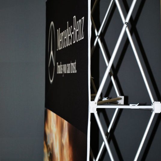 Create a large eye catching impression when your beautifully printed brand image is on display with a graphic laminates portable bannerwall!