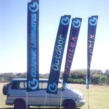 Our outdoor event branding solutions including Telescopic, Arc and Sharkfin flags, providing high visibility to your all-important brand. Perfect for event promotions, brand advertising, sports events, exhibition events, open air location awareness such as service stations, shopping malls and resorts.