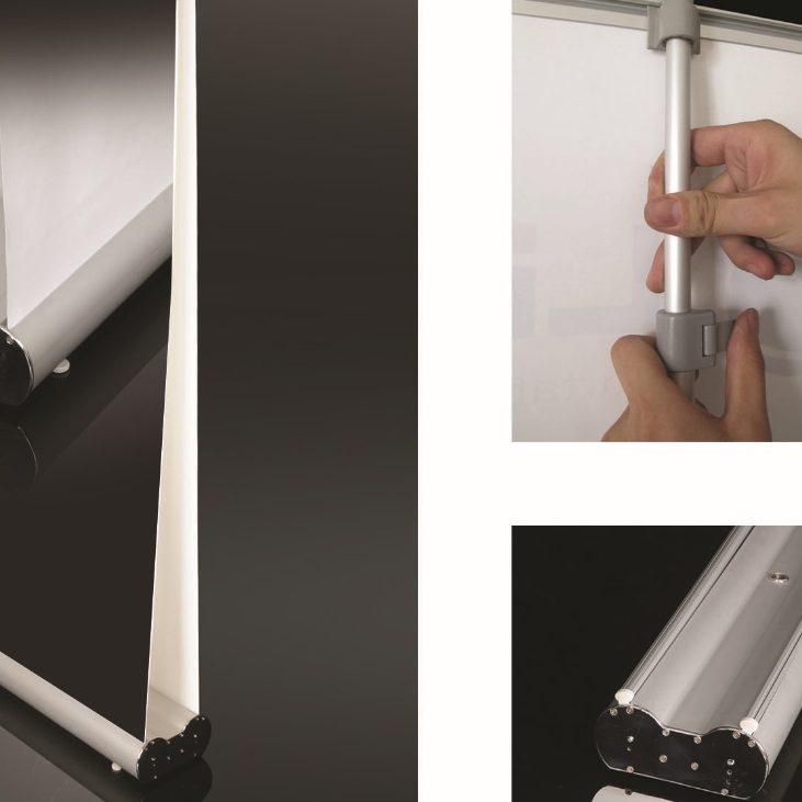 State of the art digital printing ensures rich colours and sharp banner graphics, secured in superior quality aluminium casing, available in silver and black.